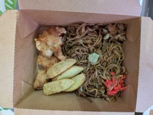| 34 | ![]() | じゅんちゃんたこやき | 焼きそば弁当 | 3枚 | 香ばしいソース焼きそばに、ジューシーなから揚げとホクホクのポテトフライを添えたボリューム満点弁当!がっつり食べたい方にぴったりの一品です。 |